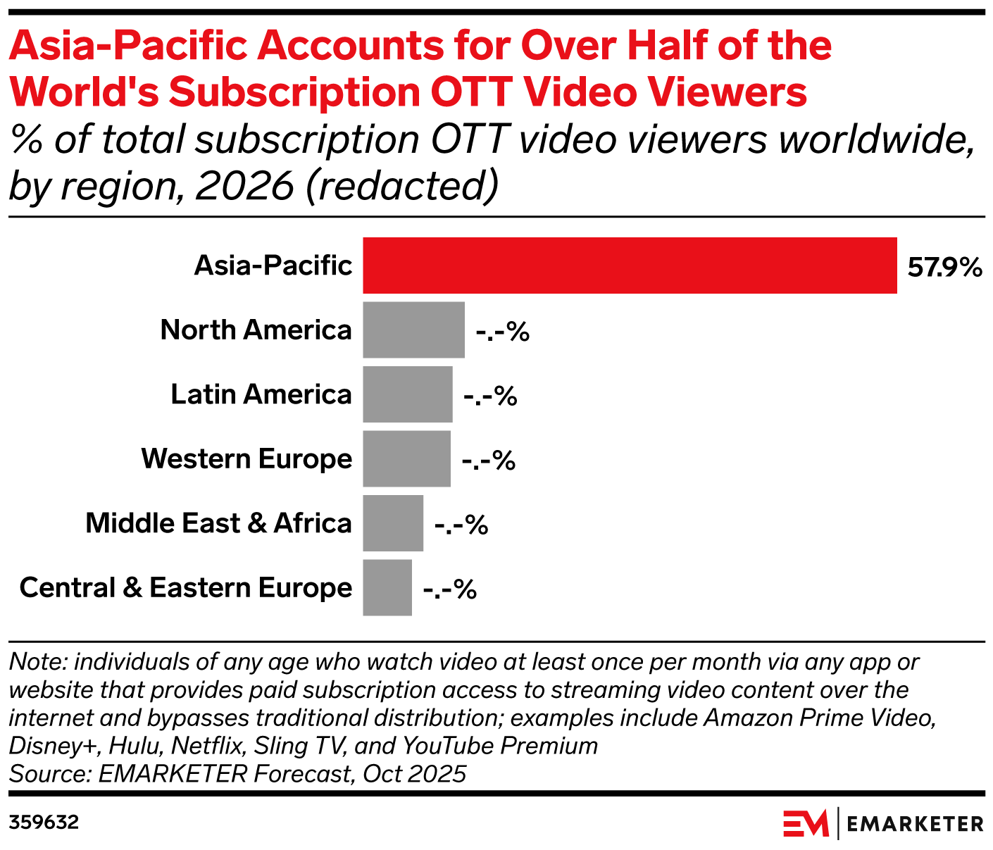 Key Stat: Asia-Pacific accounts for the vast majority of subscription OTT (sub OTT) viewers worldwide, with nearly 6 out of 10 of them based in the region.