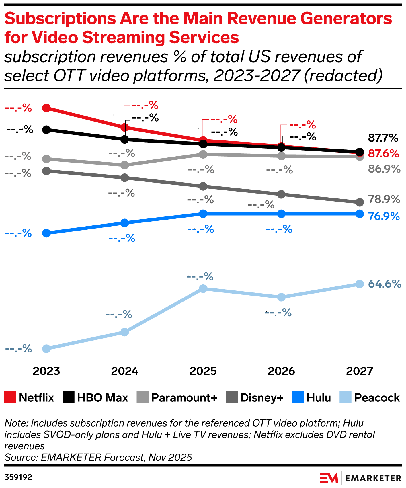 Key Stat: US streaming services will continue to reduce their reliance on subscription revenues, but Netflix will still receive 87.6% of its revenues from subscriptions in 2027.