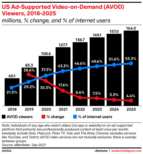 KEY STAT: There will be 127.7 million US AVOD viewers in 2021.