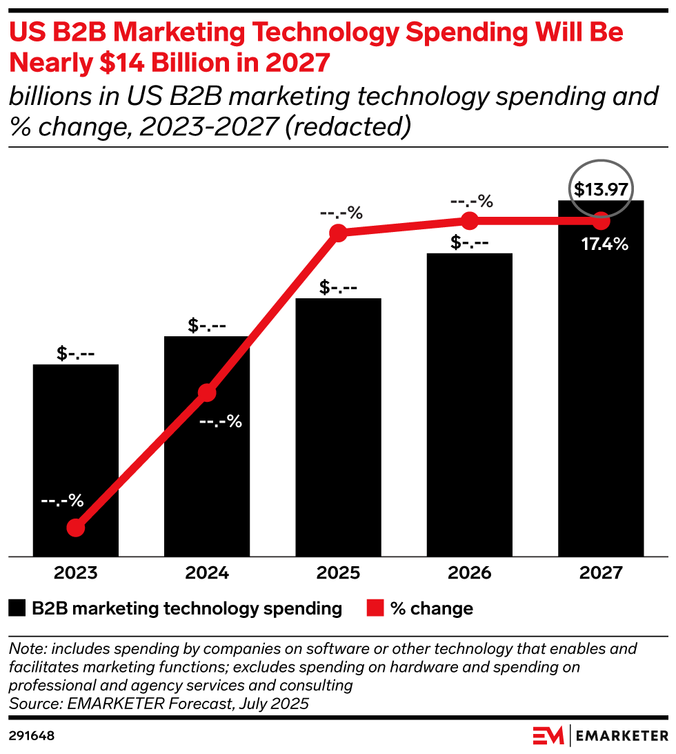 Key Stat: US B2B martech spending will grow at a steady pace from 2025 to 2027, reaching $13.97 billion in 2027.