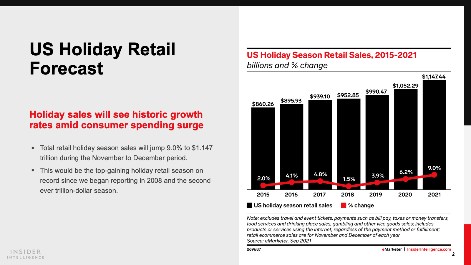 WHAT’S IN THIS REPORT? Our forecast for US holiday season spending for retail, ecommerce, and key shopping days and analysis of consumer, category, and retailer expectations for the season.