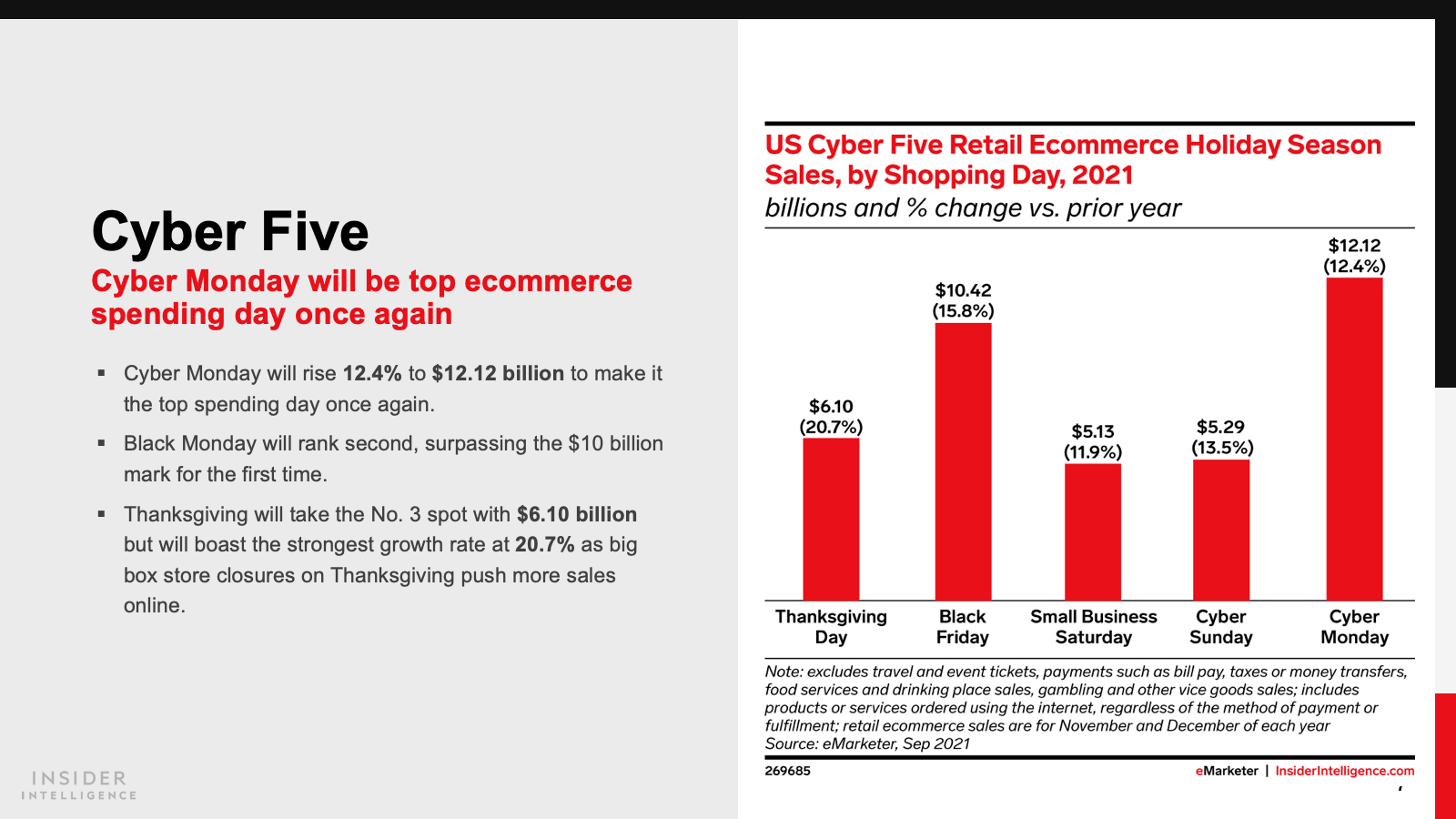 KEY STAT: Cyber Monday and Black Friday will each surpass $10 billion in US ecommerce sales this year.