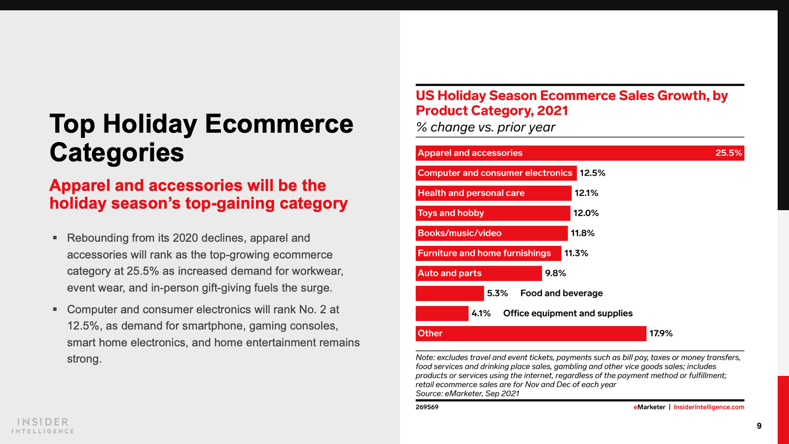 Amazon will dominate holiday ecommerce once again, though omnichannel leaders Walmart, Target, and Best Buy are also positioned for success. Apparel and department store retailers will benefit from a pandemic rebound.