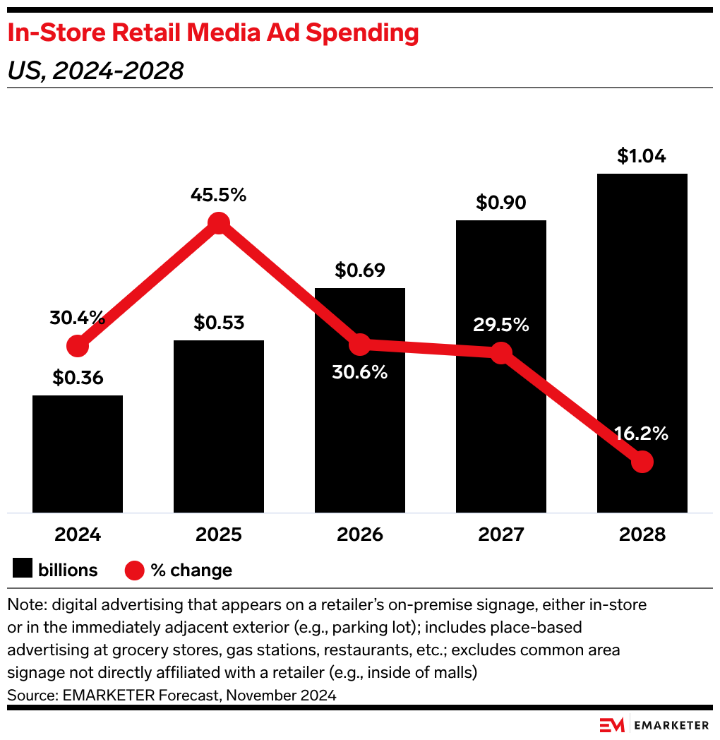 The news: Walmart is gaining significant ground in retail media against major competitor Amazon. Nearly half (46%) of marketers have used Walmart Connect this year, up from just 24% in 2023, per Digiday.