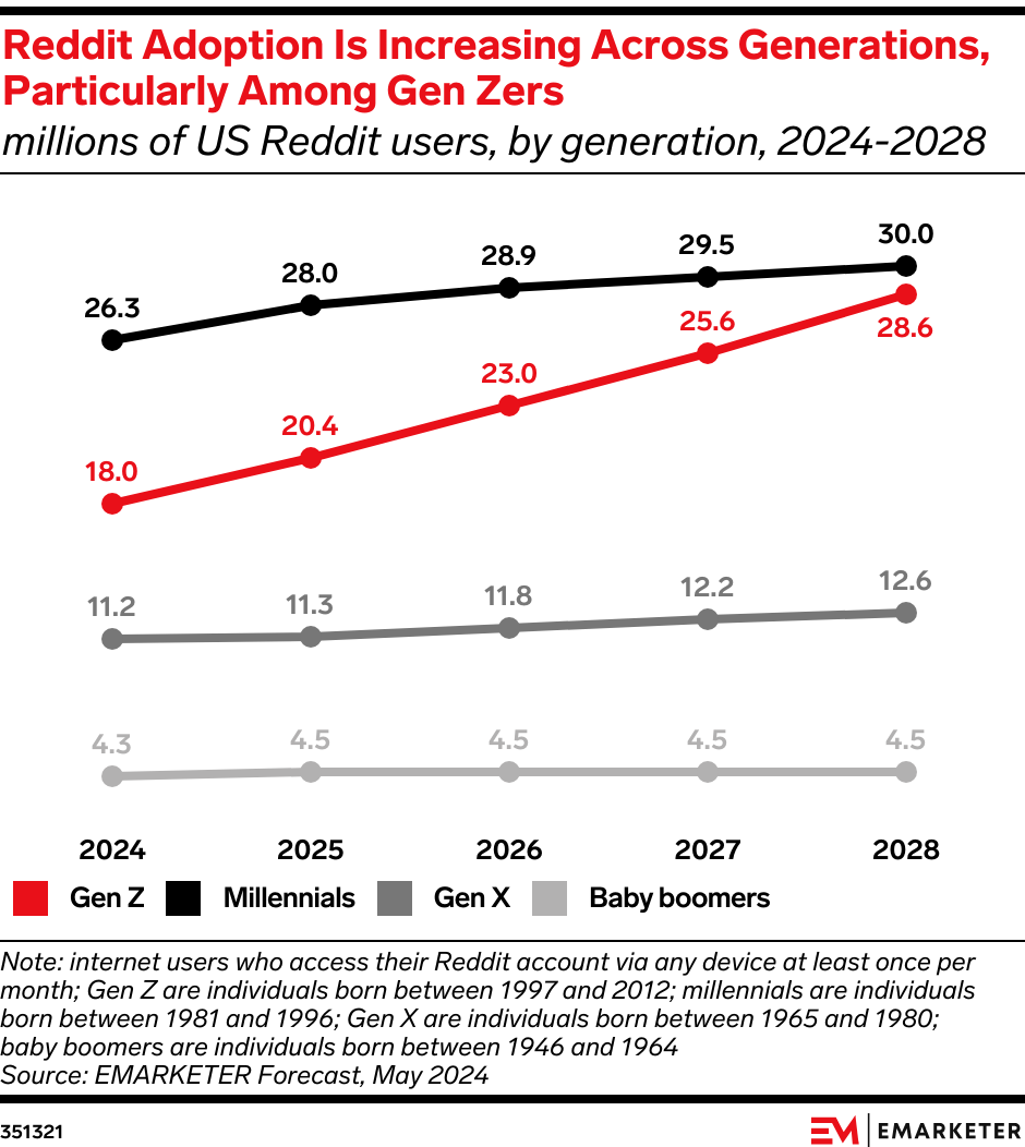 Reddit, unlike most social media platforms, is growing: Facebook, Instagram, and even TikTok are seeing engagement drops, per Comscore data.
