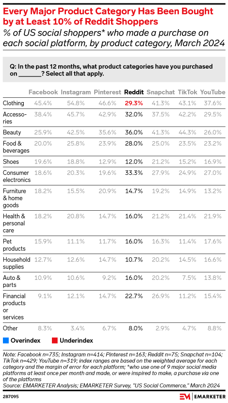 Shopping has spread across the entire social ecosystem. Our survey of social shoppers found that the kinds of goods and services people buy differ meaningfully across the platforms.