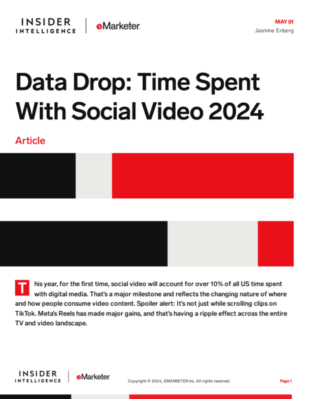 Social video is getting an additional boost in daily time spent this year. It’s mostly coming from a less expected place—Meta—even as TikTok continues to dominate in total time spent.