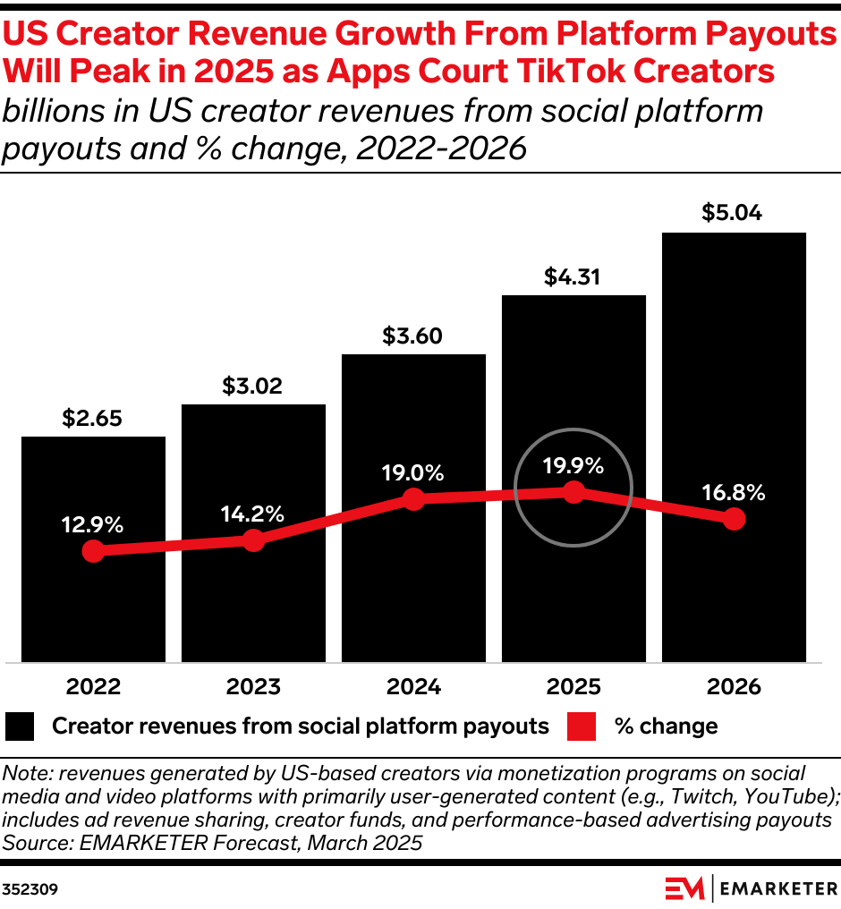 Why creator monetization matters: As influencer marketing spending grows, platforms that offer consistent payouts will retain creators who provide valuable ad space.
