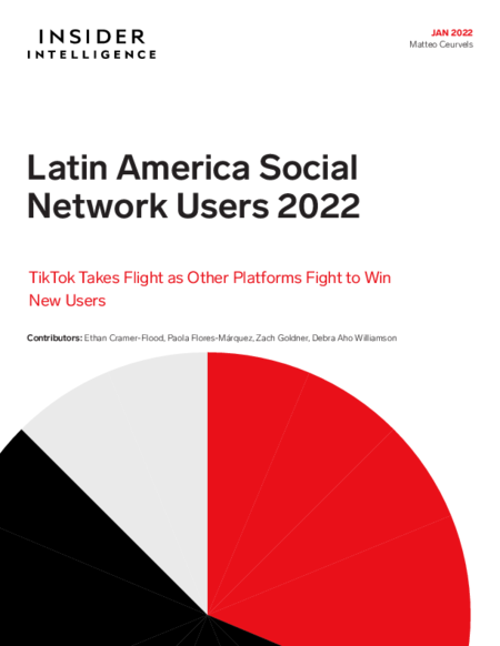 Nearly 400 million people in Latin America will use social networks in 2022. Facebook remains the region's biggest platform, but it will experience its slowest user growth on record this year as TikTok and Instagram make gains.